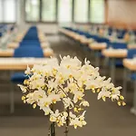 Разом з письмовим столом номери також мають звуконепроникні вікна. У номерах також є сейф, письмовий стіл і звуконепроникні вікна. Поряд із окремим туалетом і душем у ванній кімнаті є фен і рушники. Номери переважно мають вид на сад.